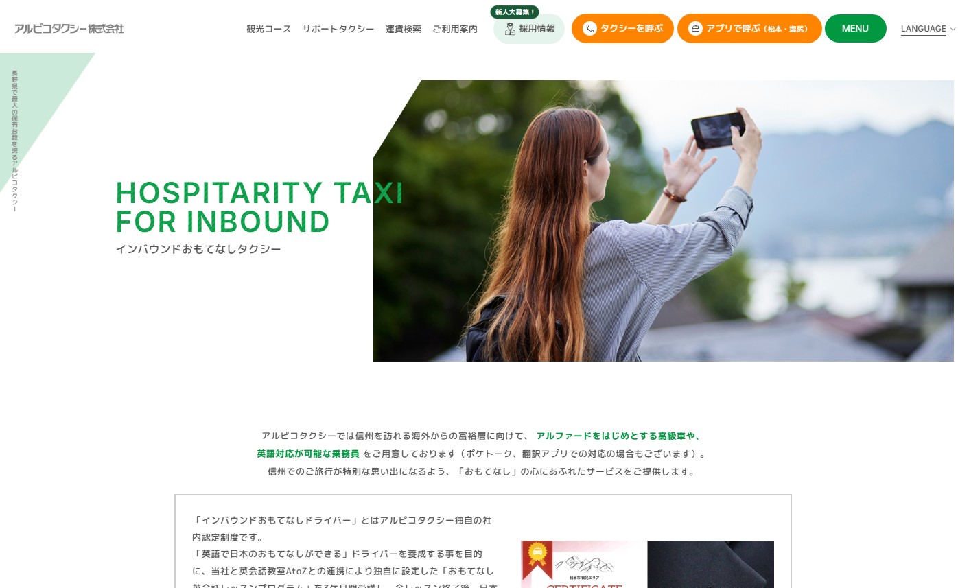 インバウンドおもてなしタクシー | アルピコタクシー