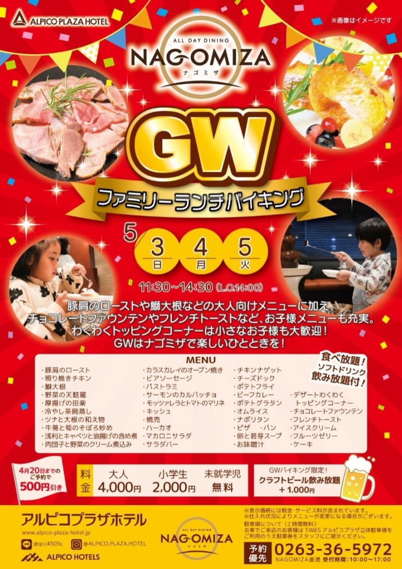 【今年もやります!ナゴミザのGWファミリーランチバイキング】